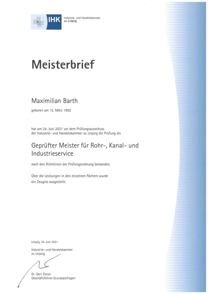 der Kanalreinigung. Diese Schulungen bestätigen den sachgerechten Umgang