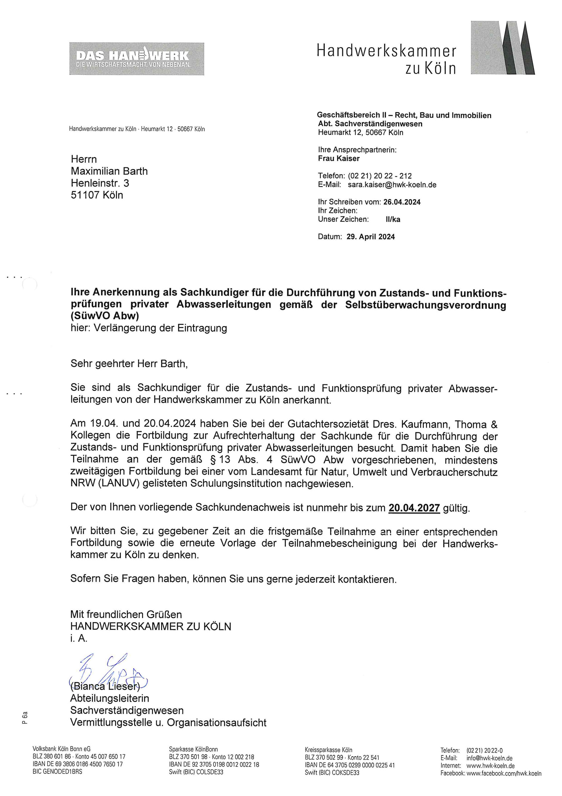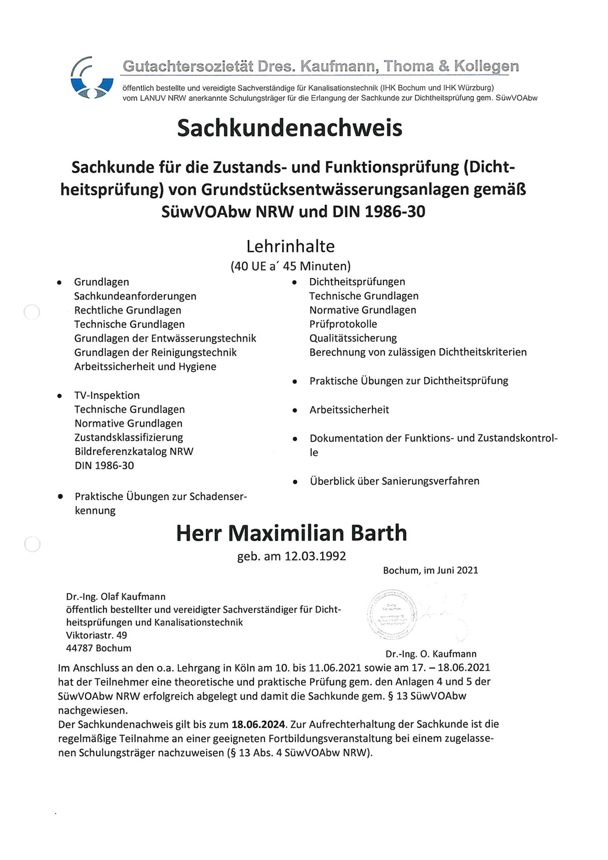 durchgeführt werden. Unsere Sachkundenachweise bestätigen, dass wir entsprechende Prüfungen