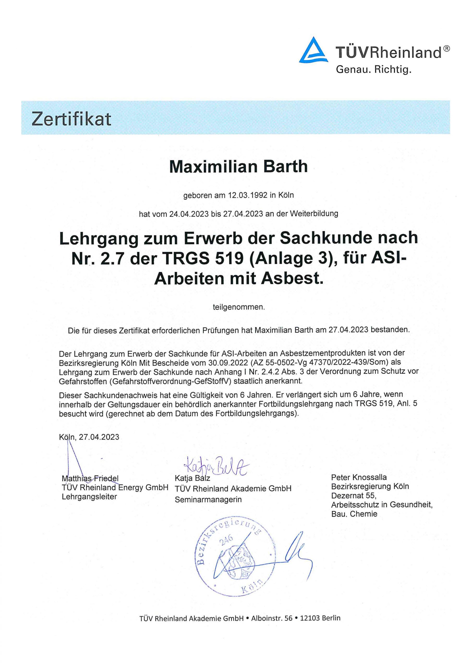 TRGS 519. Diese Qualifikation erlaubt Arbeiten an