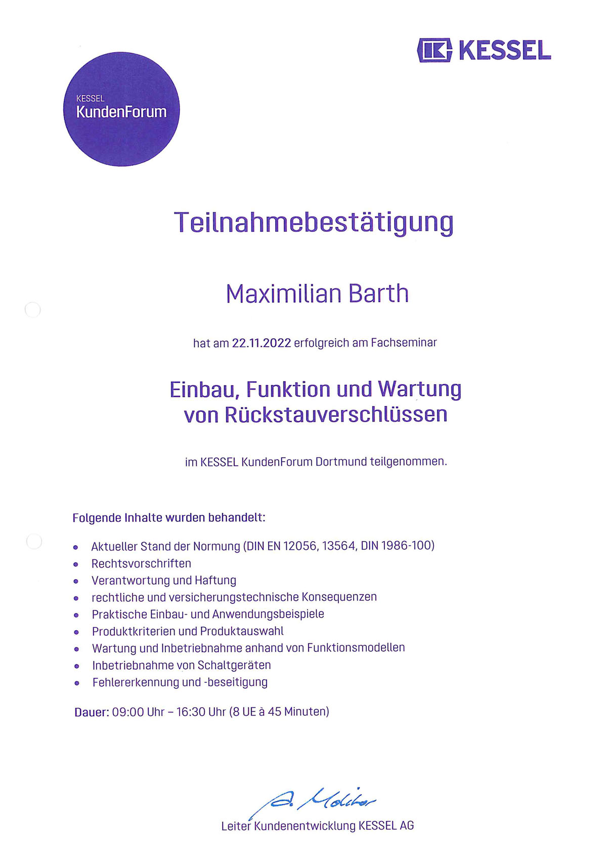 KESSEL absolviert. Diese Schulungen vermitteln