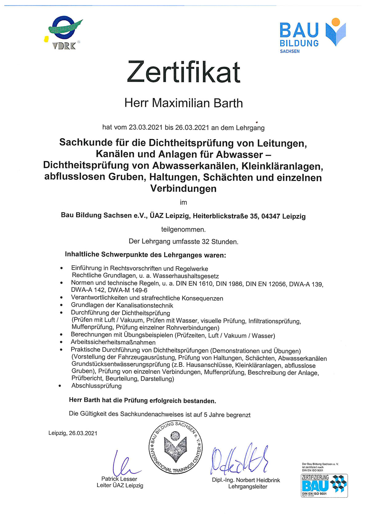 Vier Mitarbeiter unseres Unternehmens verfügen über eine Zertifizierung nach